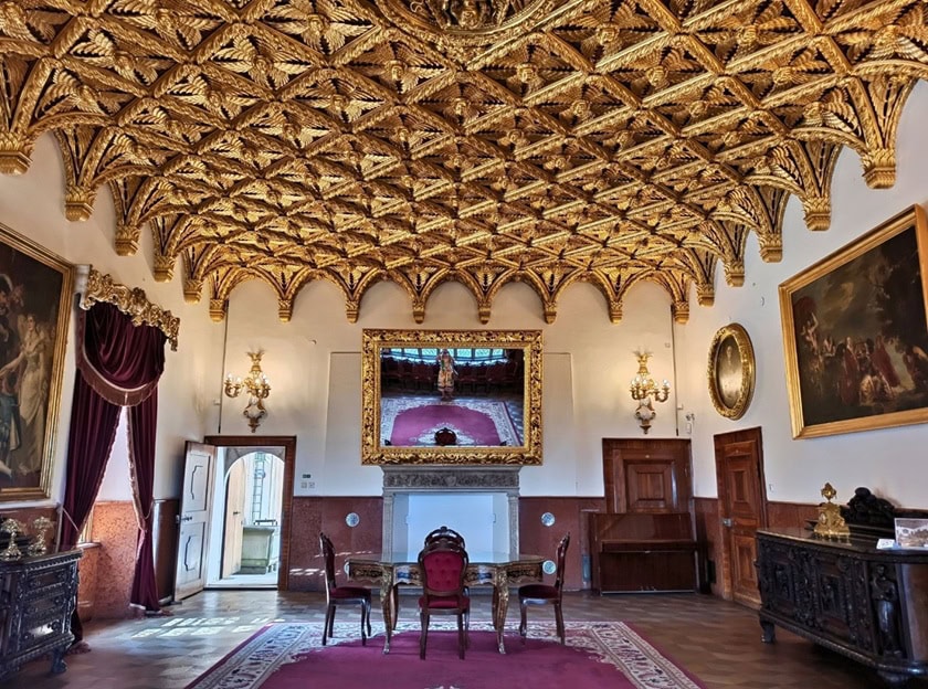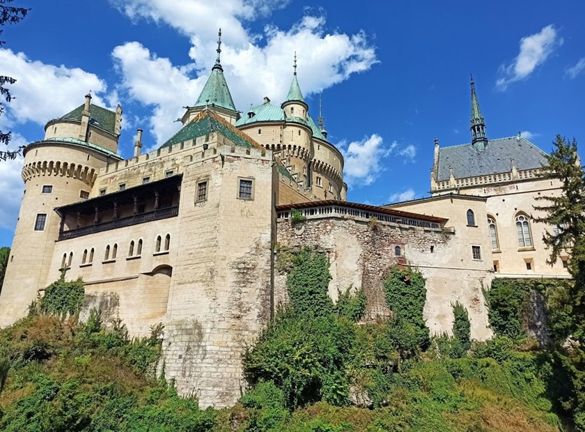 W małej miejscowości Bojnice położonej nieopodal Prievidzy, w środkowo-zachodniej Słowacji znajduje się bajkowy zamek, który jest jednym z najładniejszych,najstarszych, najlepiej zachowanych i najczęściej zwiedzanych zamków nie tylko na Słowacji, ale także w Europie Środkowej. Położony jest on na trawertynowym wzgórzu i otoczony pięknym parkiem , a pod nim znajduje się naturalna jaskinia. Zwiedzając wnętrza zamku zobaczyć można bogate zbiory mebli, obrazów, broni i porcelany. Częścią zamku jest też naturalna jaskinia trawertynowa o średnicy 22 m i wysokości 6 m. Znajduje się 26 metrów poniżej poziomu 4. dziedzińca. Jaskinia powstała w wyniku napływu wody i rozbicia stosu trawertynu przez krater i zewnętrzne szczeliny. Woda rozbiła trawertyn i go zmyła, tworząc w ten sposób okrągłą przestrzeń jaskini z naturalnymi dekoracjami na ścianach. W jaskini znajdują się dwa stawy. Na trasie zwiedzania znajduje się dużo schodów, jednak warto je pokonać.